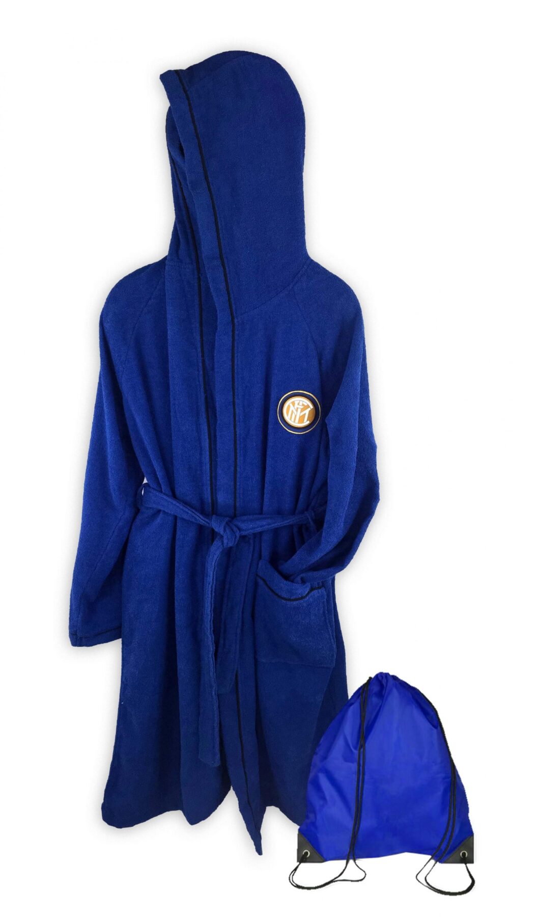- Accappatoio unisex – Modello in microspugna di cotone, con cappuccio, cintura e due tasche pratiche.